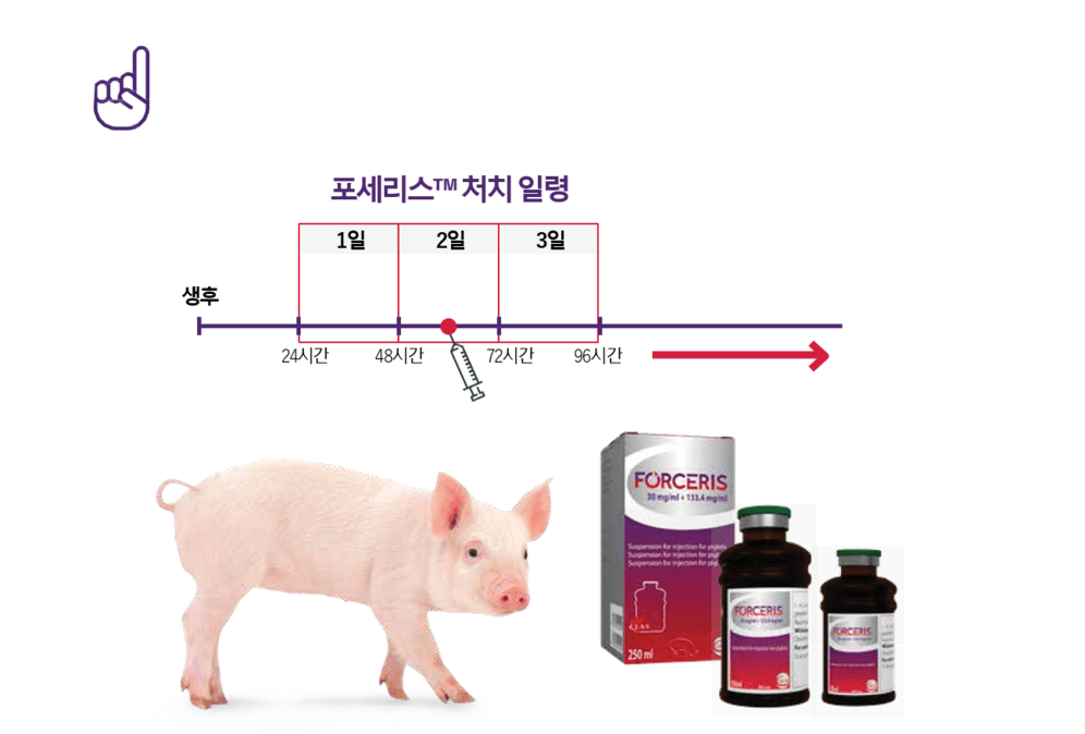 세바코리아는 포세리스™를 2일령 자돈에 투여하는 것을 권장합니다.